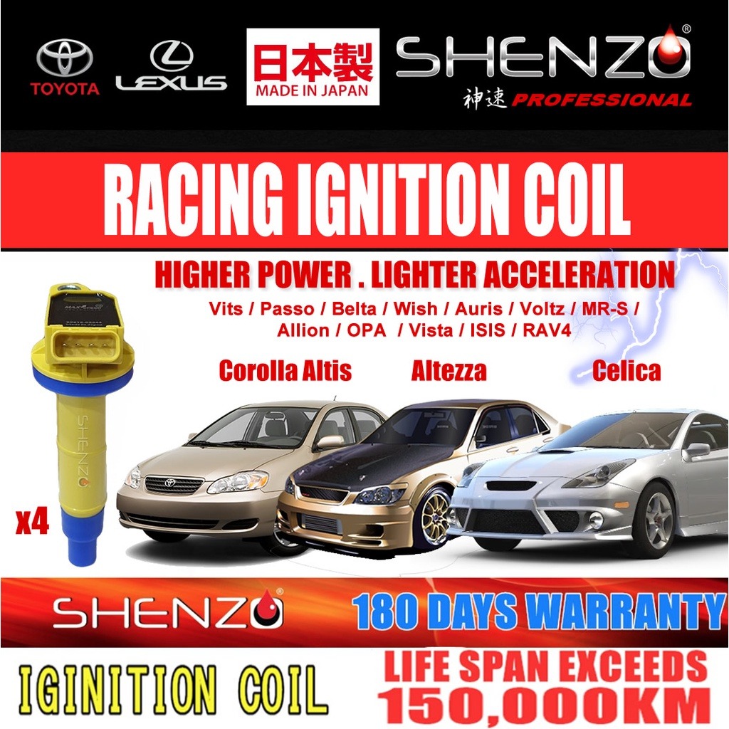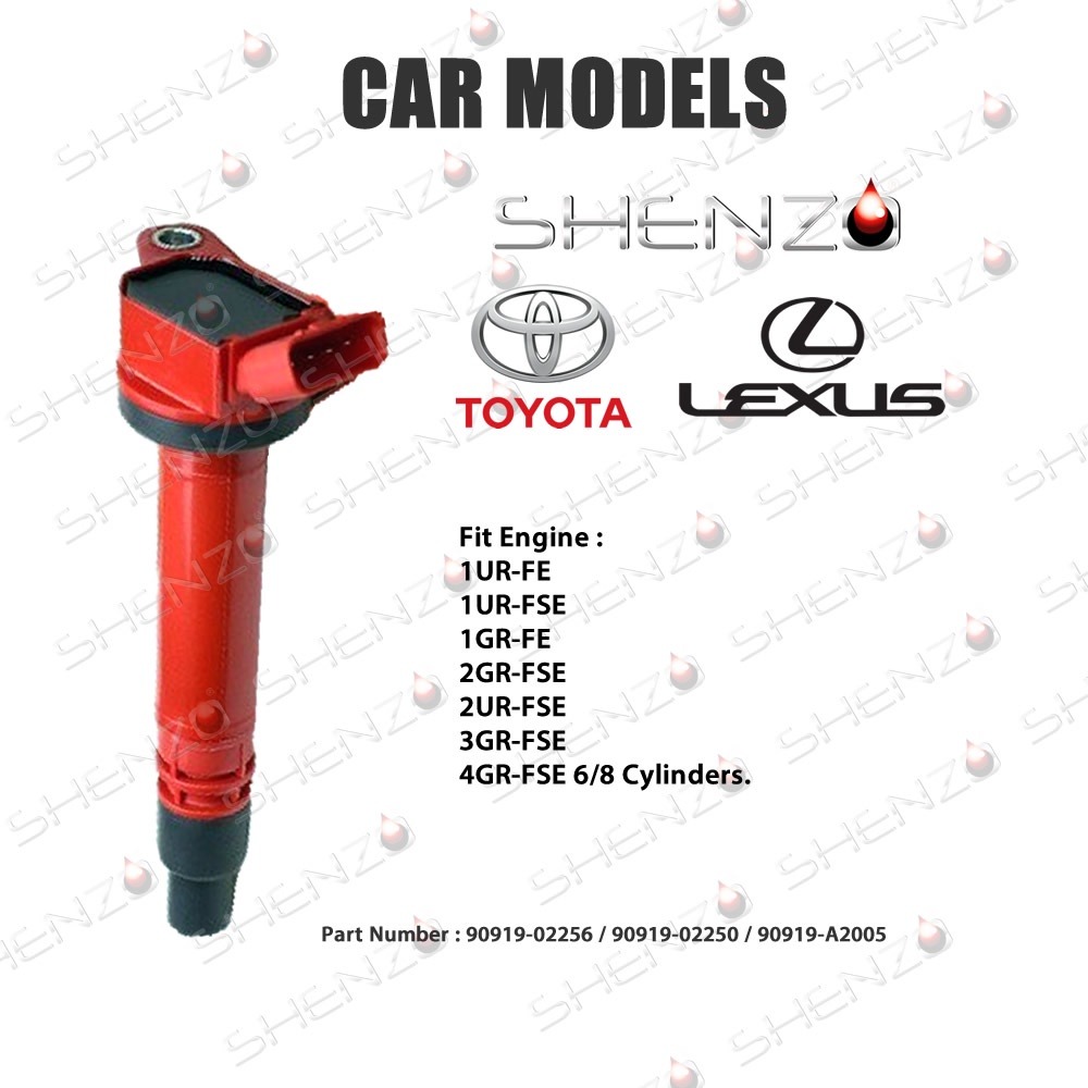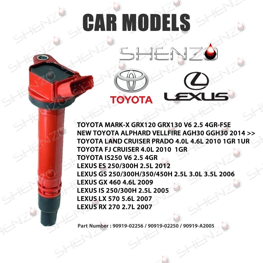 Shenzo Racing Ignition Plug Coil 90919-02256 / 02251 for Toyota Camry Hybrid Vellfire AGH30 FJ Cruiser Mark X